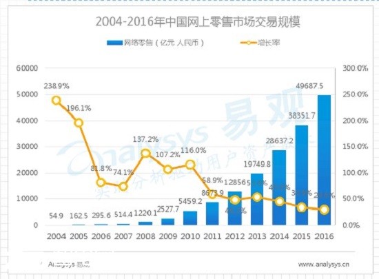 除此之外,还有一个更重要的因素是,电商平台的兴盛以及整体社会消费习惯的变化正在一步步侵占着传统零售的增长空间。十年来,电商不断地蚕食线下实体店的蛋糕,2016年中国网上零售交易规模4.97万亿,占整个中国社会消费品零售总额的14.95%。