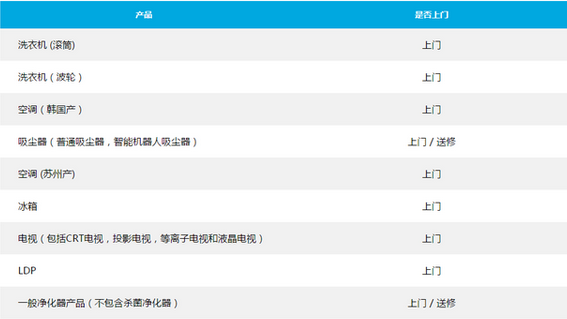 三星上门维修服务,只针对一些如:冰箱、电视、洗衣机(滚筒)等产品,手机、平板等产品并不在上门服务之内。