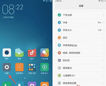 一、首先在小米5s桌面找到并点击进入【设置】,依次再进入【其他高级设置】设置选项,