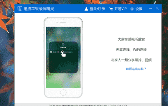 2、运用迅捷苹果录屏精灵,操作方法与AirPlay无异,手机电脑或电视保证在同一个网络环境下,打开苹果手机AirPlay镜像功能,然后搜索设备,点击连接,连接成功就可以投屏成功。