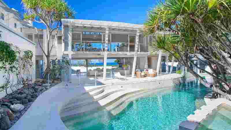 开放式设计确保休息室与餐厅和厨房空间毫不费力地相连。在这里,您会发现大型玻璃堆叠滑动门通向朝北的大露台,您还可以在悠闲和非常私密的环境中用餐。所有浴室空间均采用柔和的灰色落地瓷砖装饰,配有时尚的壁挂式梳妆台,石材顶部和浅色木材饰面底座。每间客房均配有带花洒淋浴头的超大淋浴间。
