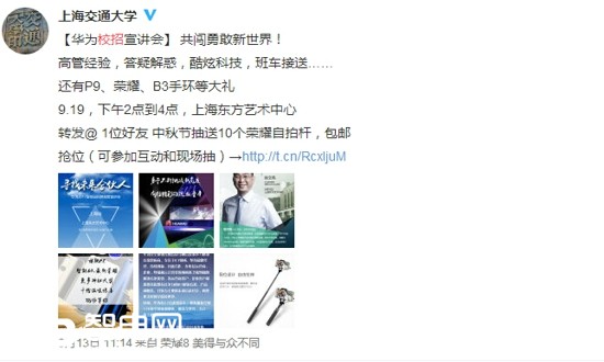 华为最近的校招已经开始了并且已经在许多学校开了宣讲会,这不最近上海交通大学官微上就发消息称在9.19,下午2点到4点,上海东方艺术中心开宣讲会。
