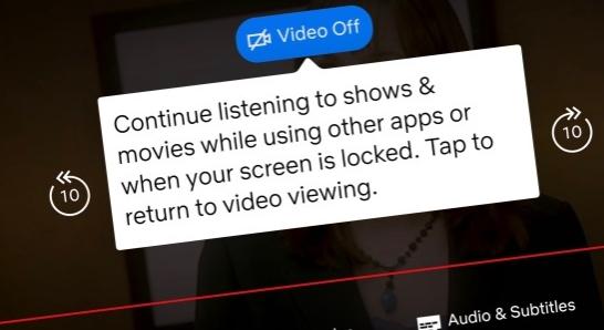 如果您不按该图标,则内容将正常播放。但是,将其关闭会把Netflix App切换为纯音频模式。动态影像将停止,但声音将停止,声音将继续在手机的扬声器或耳机上播放。