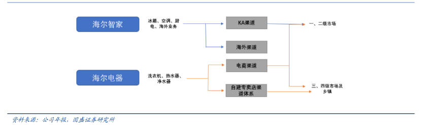 (海尔智家与海尔电器的产品及渠道梳理,来源国盛证券)