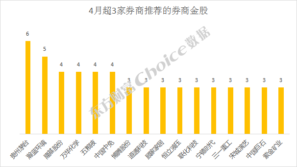 东方财富Choice数据不完全统计,截止至4月7日晚,有24家券商发布4月金股(Choice数据研报平台目前也会抓取券商微信公众号发布的相关研报)。