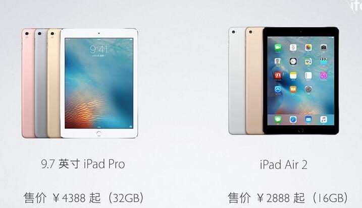 9.7英寸iPad Pro的起步价是4388元(32GB),和iPad Air 2起步价2888元(16GB)相比有着1500元的差价。1500元的差价能换来的是: