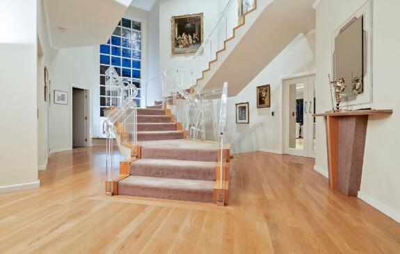 中央楼梯颇具个性。透明的栏杆增加了房屋已经足够大的空间感。