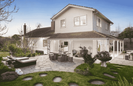 它的主人的眼睛,家庭仍然包括园景花园里的果树,以及燃木比萨饼烤箱和烧烤。