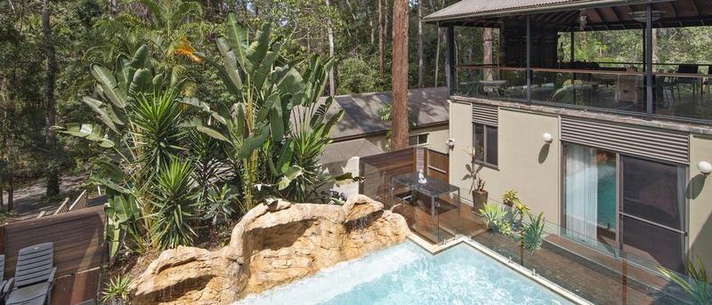 主屋设有开放式厨房,用餐和休息室,可通往俯瞰游泳池的娱乐凉亭,游泳池设有瀑布。