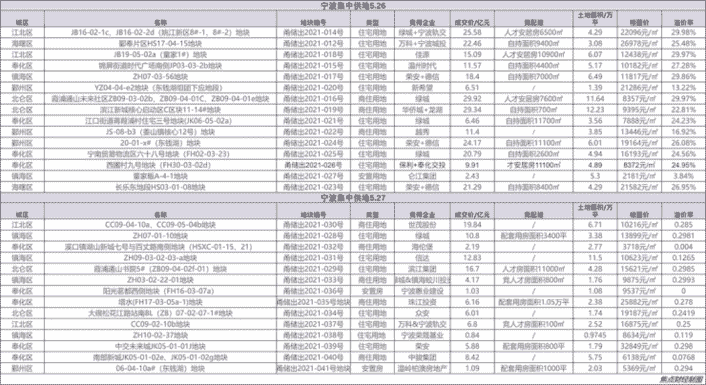 5月27日,宁波结束了为期两天的首批集中供地出让,共涉及海曙区、江北区、鄞州区、北仑区、镇海区和奉化区6个区的29宗地块,总出让面积达1981亩,总起价286.4亿元,总成交价358.08亿元,有20宗地达上限价。